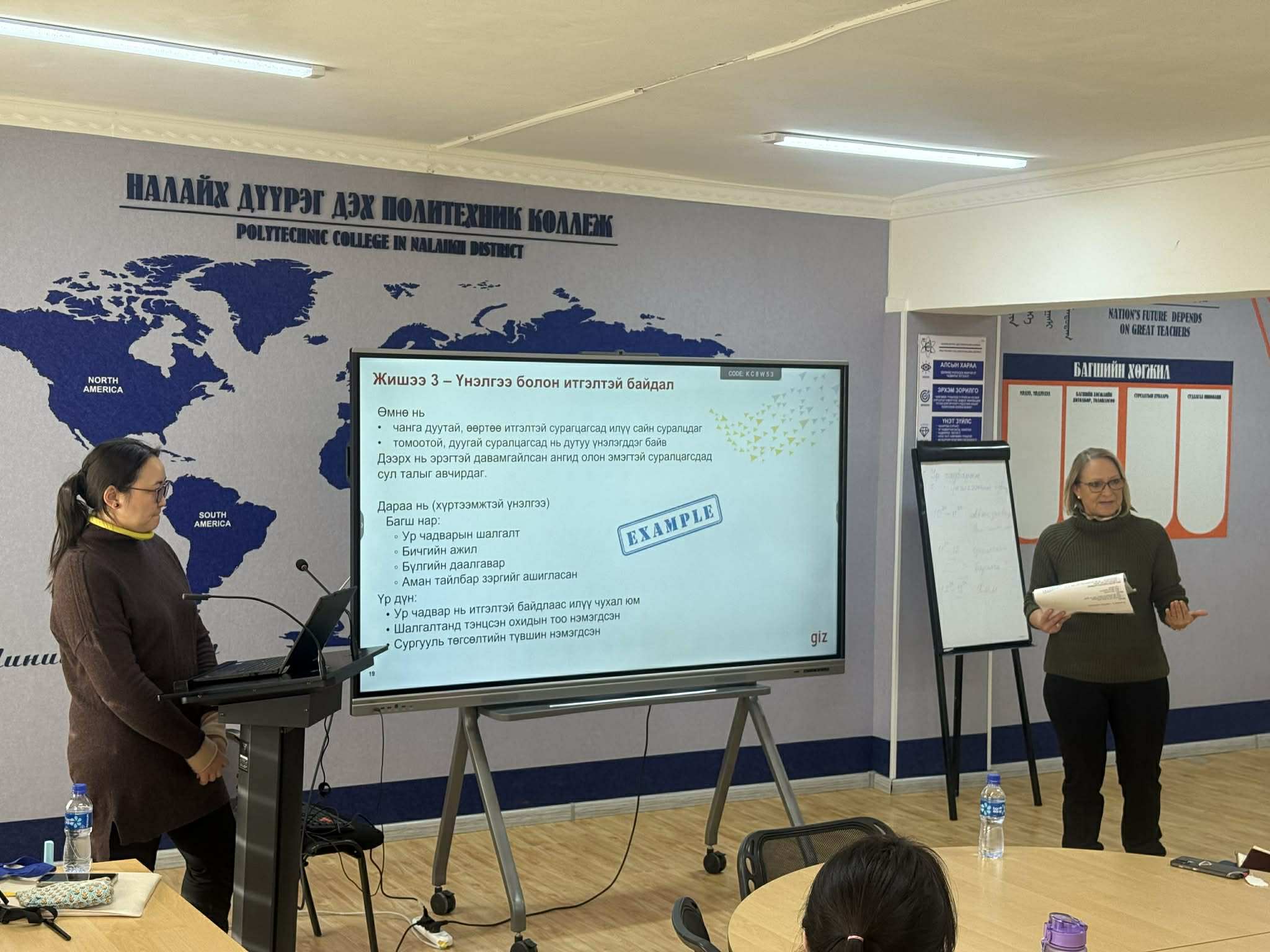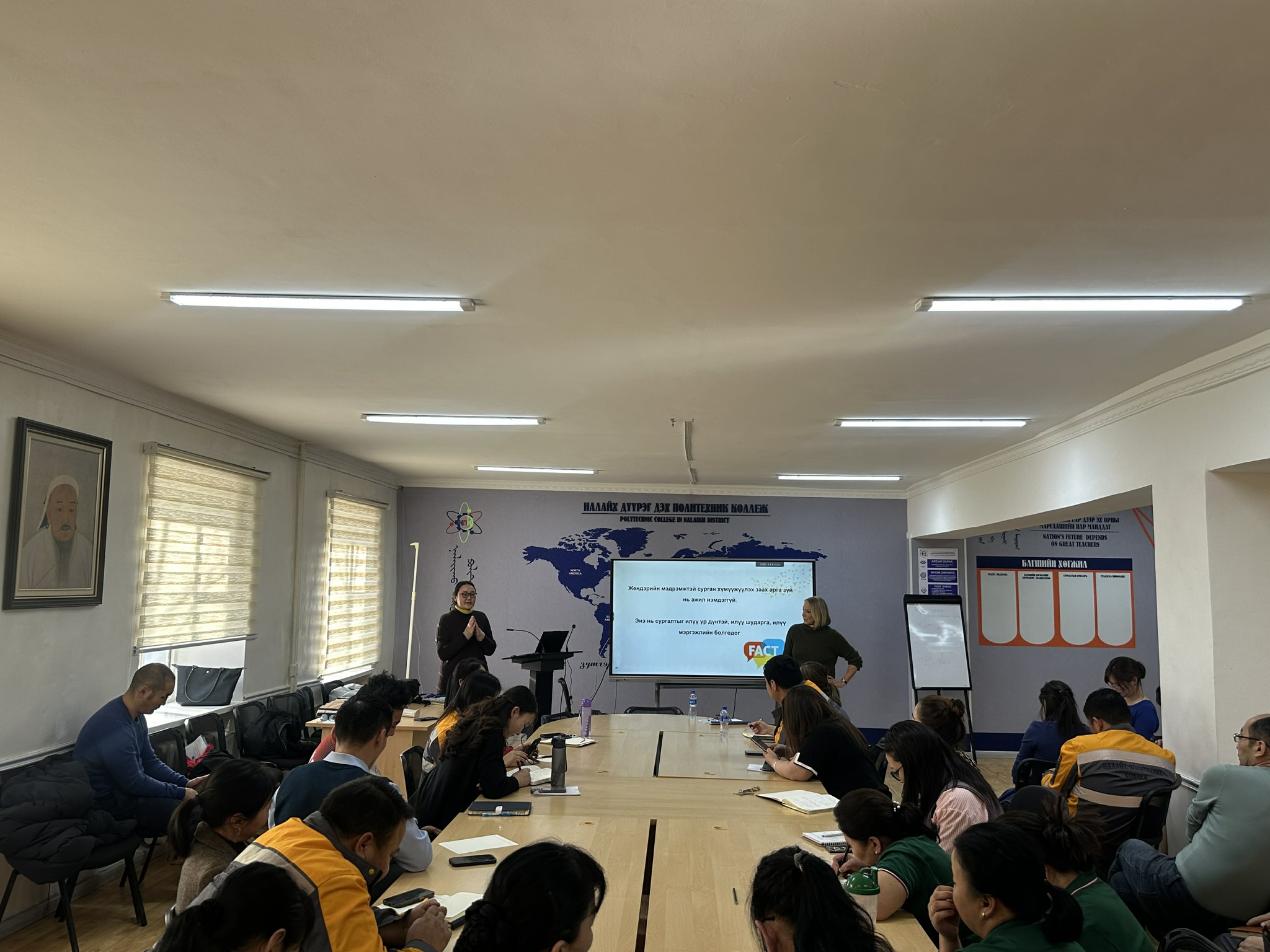 Жендэрийн олон улсын зөвлөх, хатагтай Анке Боуссенэ “Түншлэлд суурилсан техникийн болон мэргэжлийн боловсрол, сургалт II” төслийн Жендэрийн мэдрэмжтэй, тэгш хамруулан сургах сургалтын орчин бүрдүүлэх зорилтын хүрээнд 2026 оны 01 дүгээр сарын 28 ны өдөр хүрэлцэн ирж багш, ажилтнуудад сургалт зохион байгууллаа.