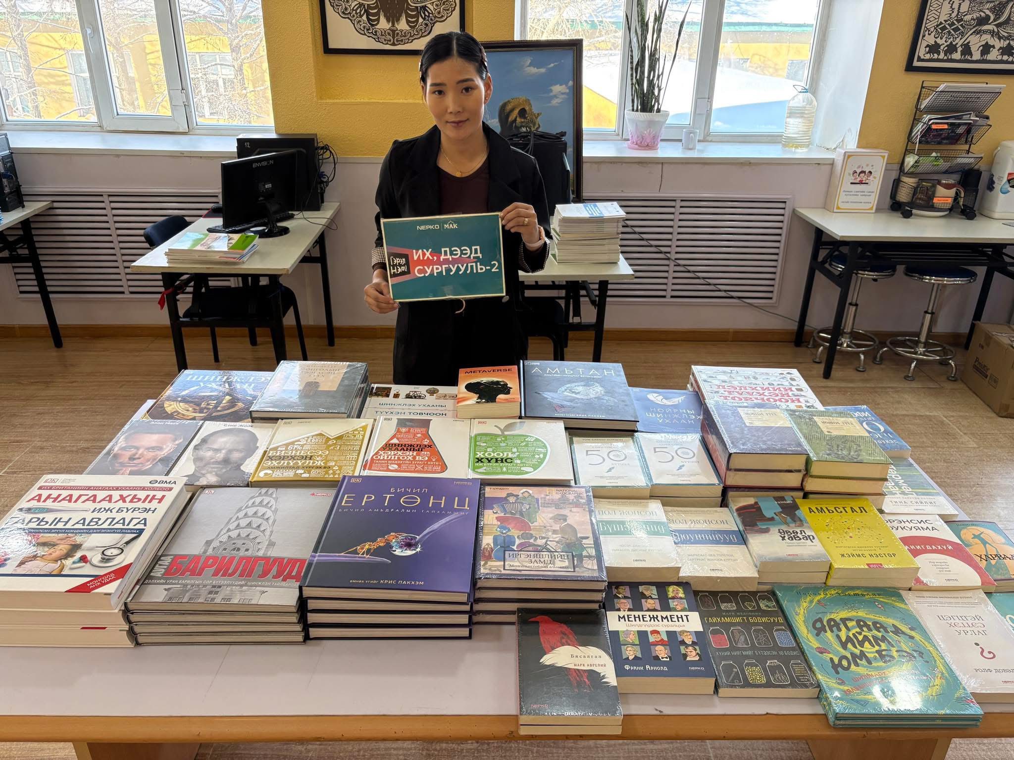 “МОНГОЛЫН АЛТ” (МАК) ХХК-тай манай сургууль олон жил хамтран ажиллаж байгаа бөгөөд тус компани нийгмийн хариуцлагын хүрээнд номын санд маань түүх, шинжлэх ухаан, танин мэдэхүй, уран зохиол, хувь хүний хөгжил зэрэг 100 ширхэг номыг хандив болгон бэлэглэлээ. Номын цагаан буян дэлгэрэх болтугай. Багш, суралцагчдынхаа өмнөөс та бүхэндээ талархал илэрхийлье.